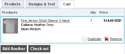 Note: To complete the purchase, click Check Out in the Cart tab. See below.