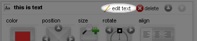 Once you have added text to your product, you can edit the text. Select the text object, and within the layer control, click the Edit Text link.
