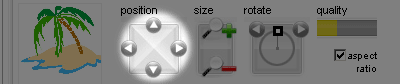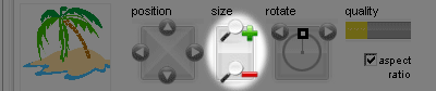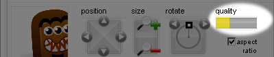 Once you have added artwork to your product, select it by clicking it. Sizing handles will appear at the extremities of the image. It will also appear within the control panel on the right. This panel gives you further control of the image.